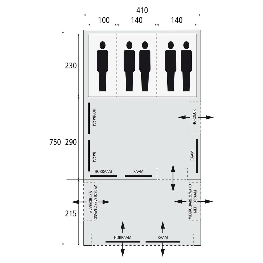 - Inclusief inritsbare voorwand met ramen en horrengaas