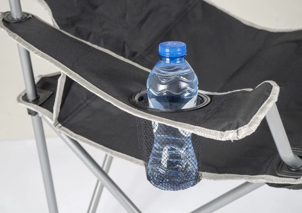 De stoel van Bo-Camp is een praktische vouwstoel. De stoel is eenvoudig op te vouwen en makkelijk mee te nemen in de meegeleverde draagtas. Het frame is gemaakt van staal en de opvouwbare campingstoel heeft een nylon bekleding. In een van de “armleuningen” zit een houder voor een flesje drinken of een beker die hierin past. Zo kan je lekker blijven zitten.