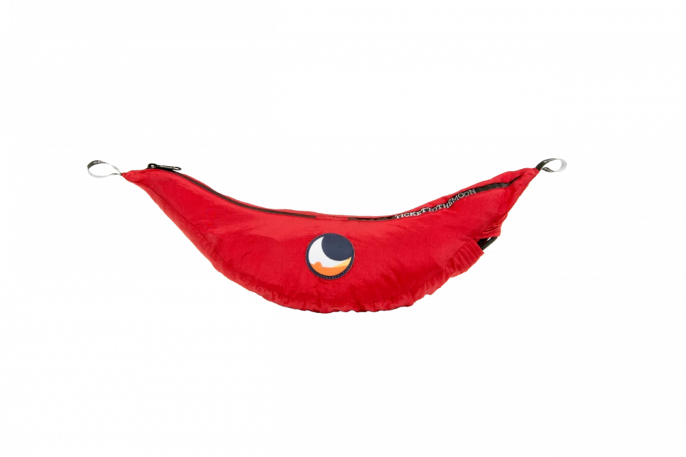 Waar het allemaal mee begonnen is, de Ticket To The Moon Compact hangmat. Gemaakt van parachute stof is de hangmat niet alleen lichtgewicht en sterk maar ook ontzettend goed ademend. Het enige nadeel hiervan is dat de wind door de stof waait. Is dit een koude wind, dan heb je hier wat extra bescherming voor nodig.
